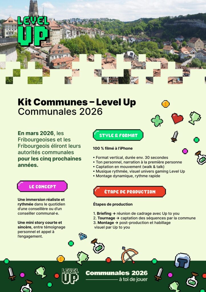 La Direction des institutions, de l’agriculture et des forêts, en collaboration avec l’Association des communes fribourgeoises (ACF), lancent la campagne « Level Up – Communales 26 » afin d’encourager l’engagement pour sa commune.