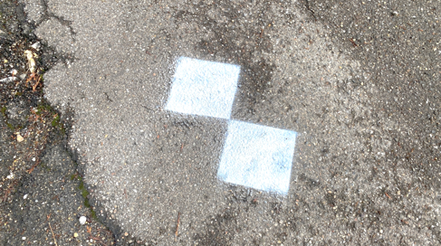 Afin d’atteindre la précision requise, des marquages spéciaux (motif en damier) sont préalablement apposés au sol dans la zone parcourue (voir photo ci-dessous).